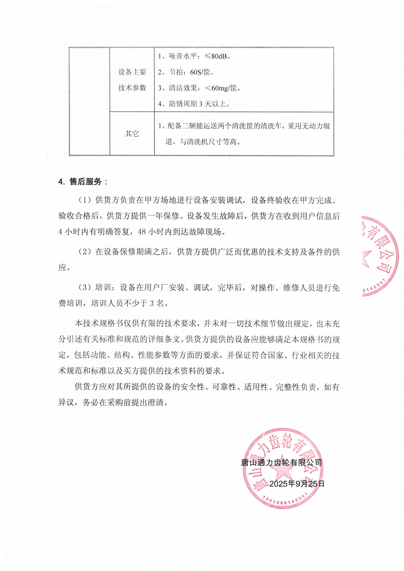 唐山通力齿轮有限公司 分动器组装线改造项目-清洗机采购公告